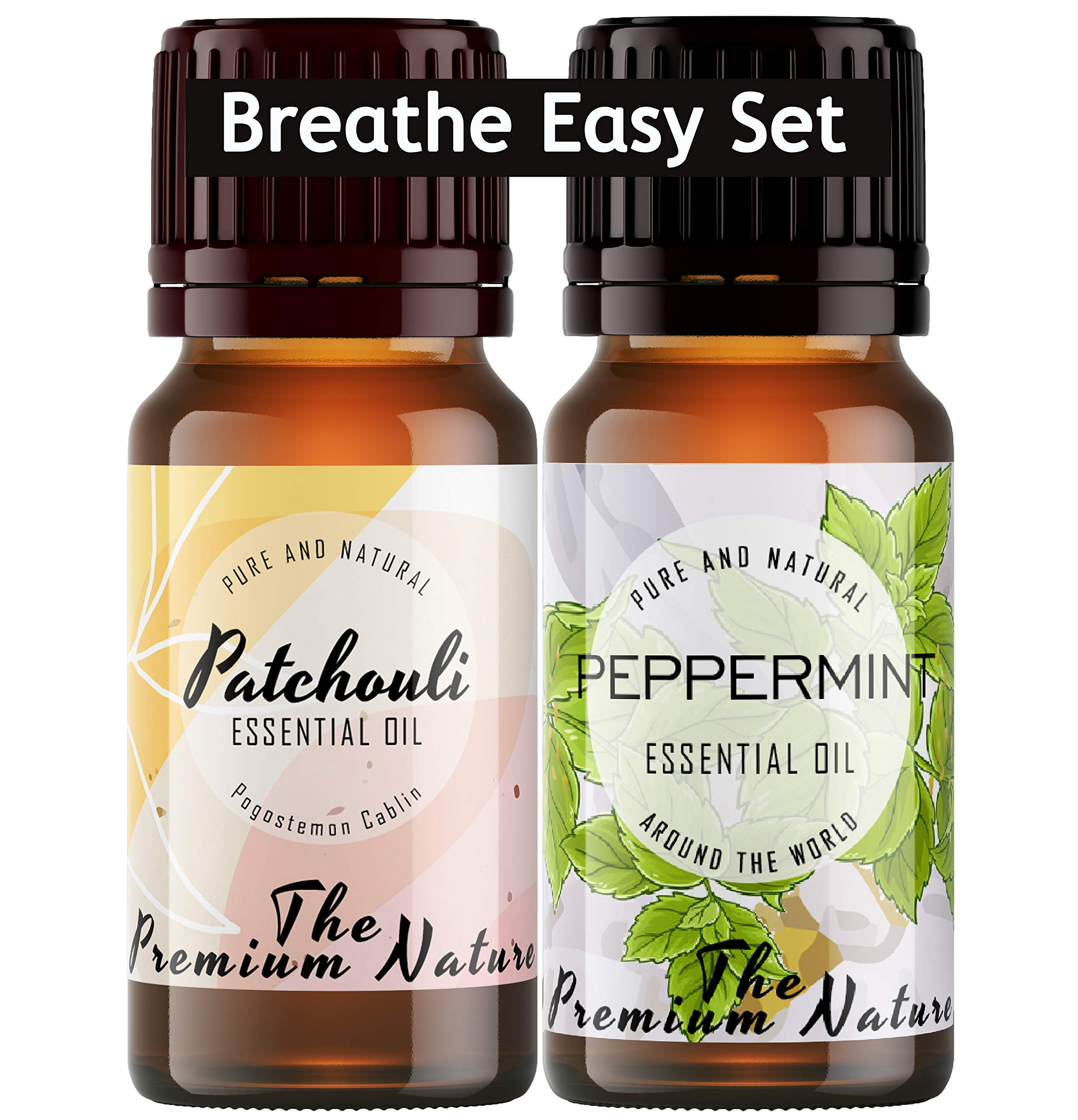 The Premium Nature Patchouli & Peppermint Oil - Breathe Easy Set for Meditation & Relaxation - 100% Pure Therapeutic Grade Essential Oils Set to Promote Inner Peace & Easy Breathing - 2x10ml