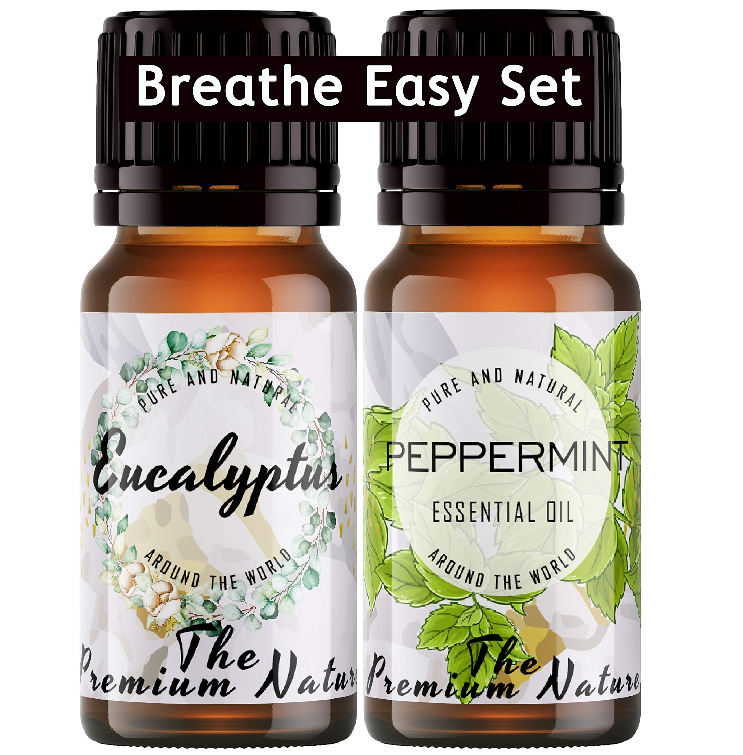 The Premium Nature Peppermint Essential Oil & Eucalyptus Oil - Breathe Easy Set for Nausea Relief & Headache Relief - 100% Pure Essential Oils Set for Congestion Relief & Purify Air - 2x10ml