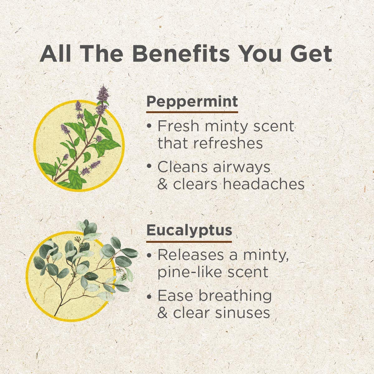 • NATURAL INGREDIENTS - Our Peppermint essential oils from the USA and eucalyptus oil from Australia are produced by steam distillation to the purest form of peppermint essential oil and eucalyptus essential oil for skin.