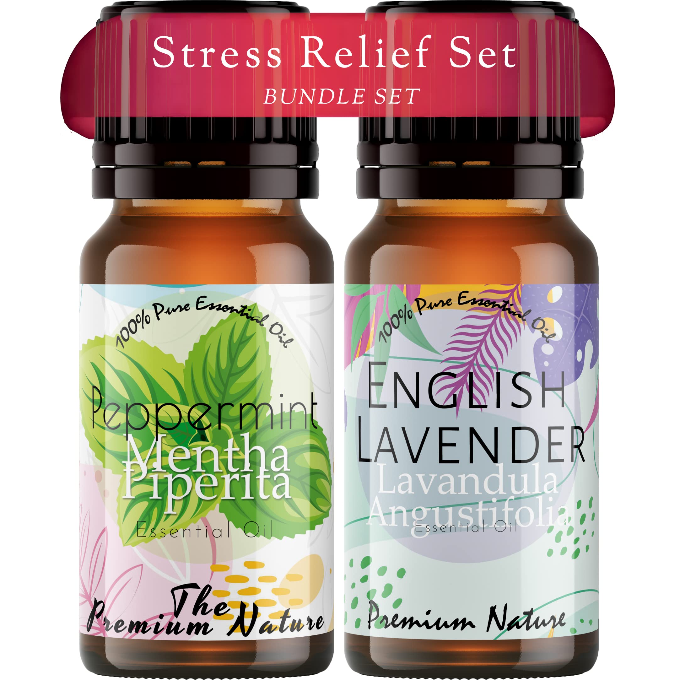 The Premium Nature Peppermint Oil & English Lavender Oil -Stress Relief Set for Tension Relief & Pain Relief - 100% Pure Therapeutic Grade Essential Oils to Uplift Mood & Relieve Sore Muscles - 2x10ml