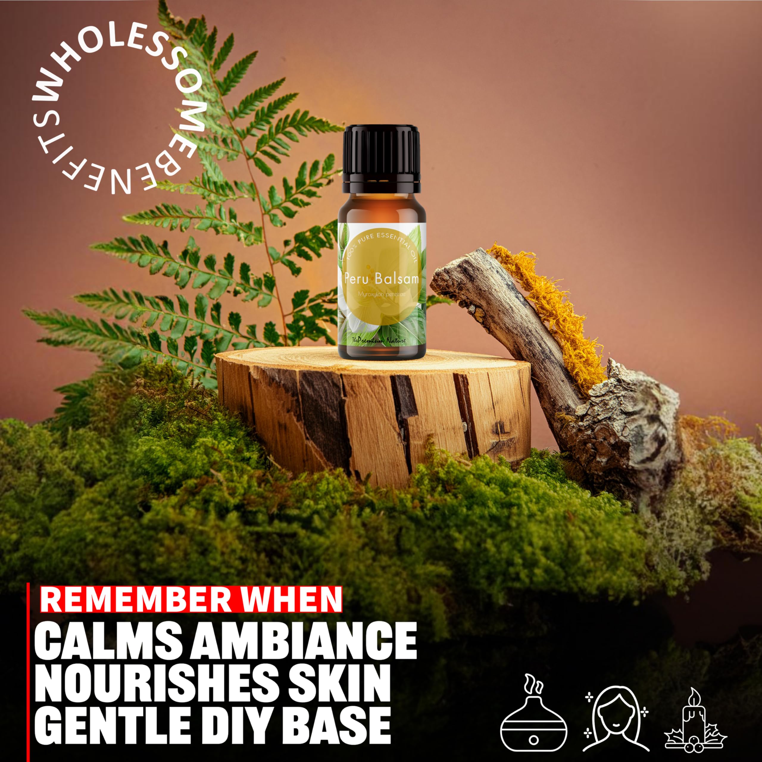 PERU BALSAM OIL FOR DIFFUSERS: Create a warm and comforting atmosphere with the rich vanilla-like scent of Peru Balsam essential oil. Diffuse 3-4 drops in your diffuser for a cozy inviting ambiance that helps you unwind.