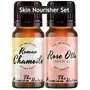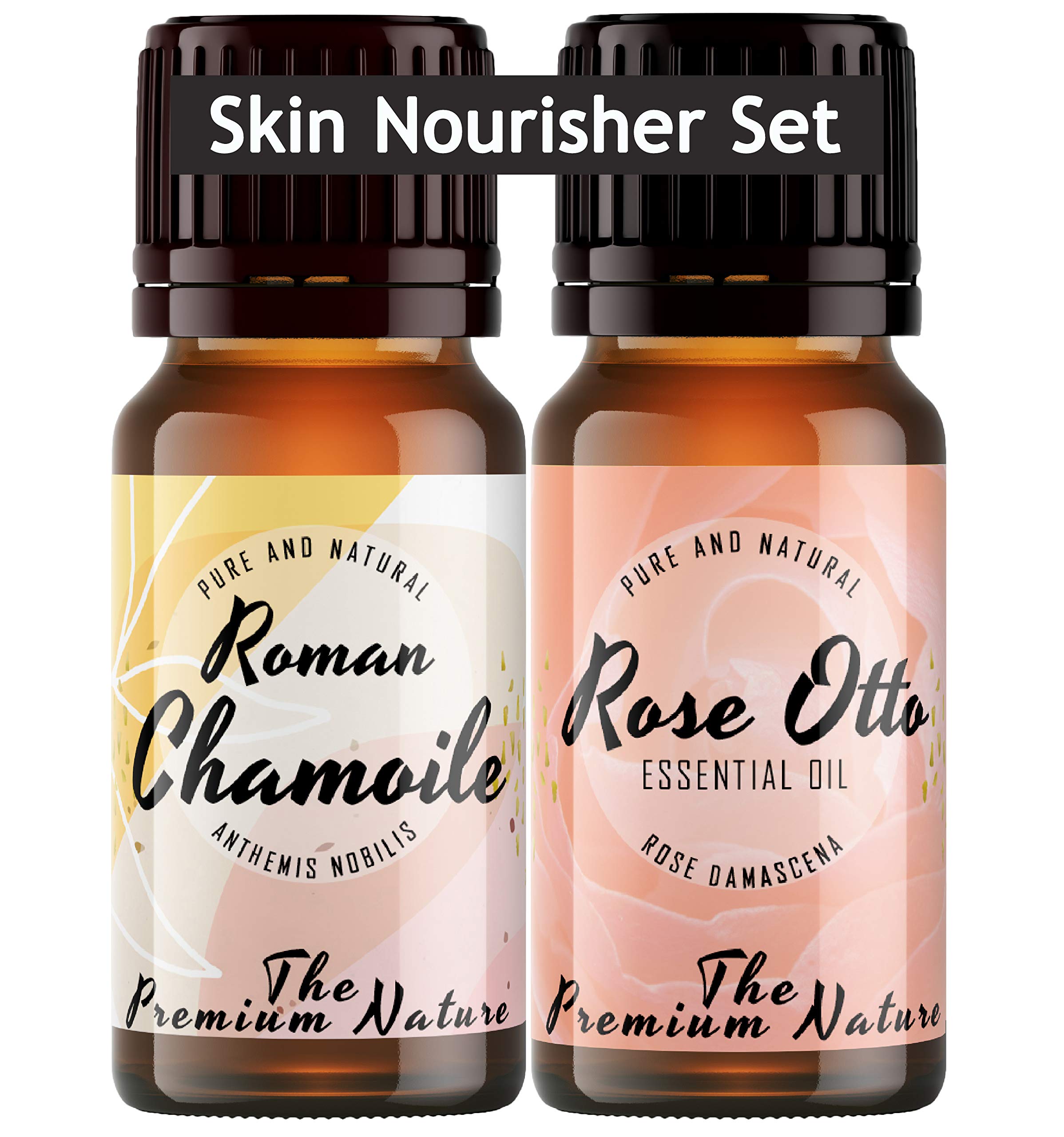The Premium Nature Roman Chamomile & Rose Otto Oil - Skin Nourisher Set for Skin Care & Stress Relief - 100% Pure Therapeutic Grade Essential Oils to Soothe Dry Sensitive Skin & Uplift Mood - 2x10ml