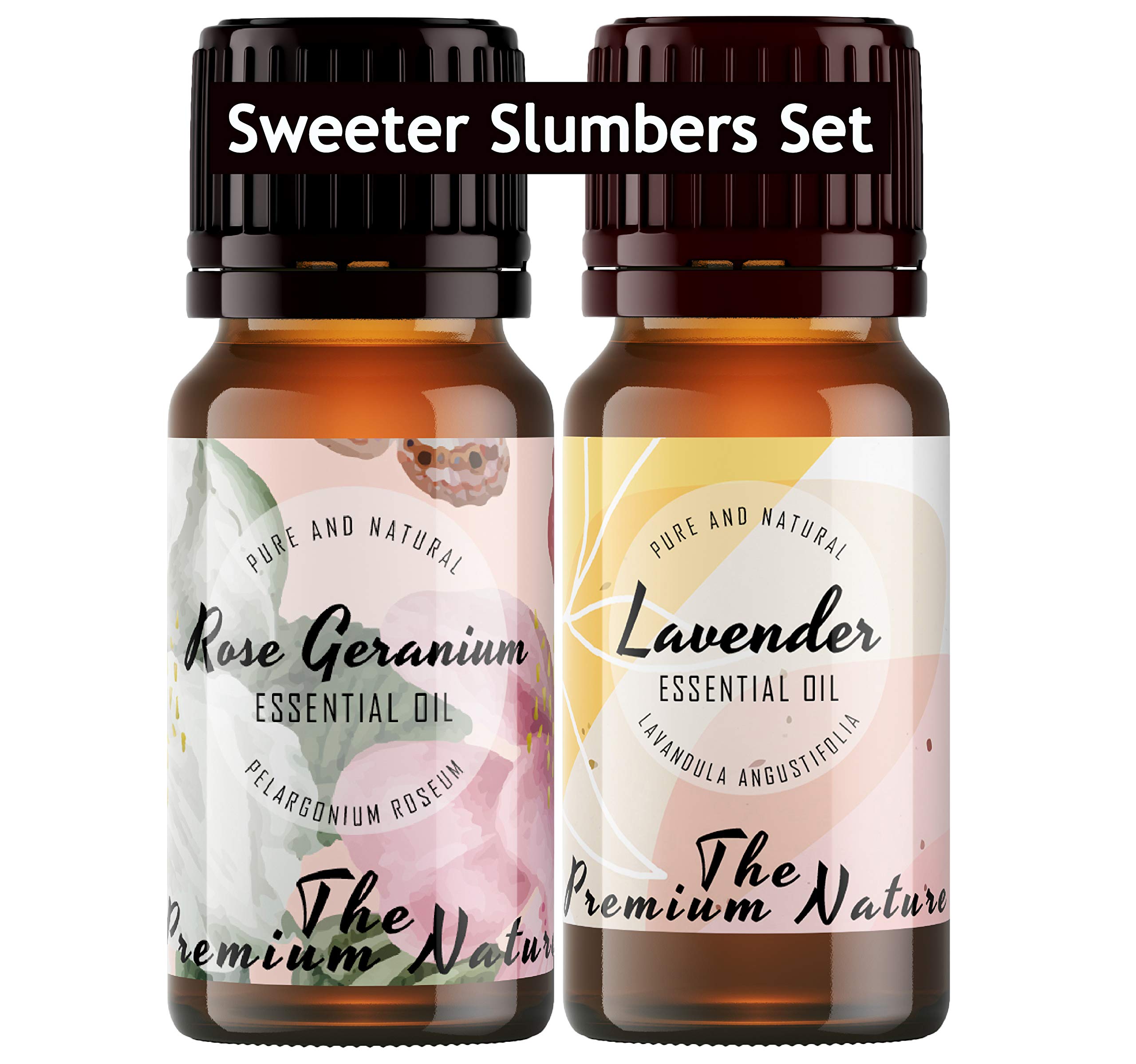 The Premium Nature Rose Geranium Oil & Lavender Oil -Sweeter Slumbers Set for Sleep Stress Relief & Relaxation - 100% Pure Therapeutic Grade Essential Oils Set to Uplift Mood - 2x10ml