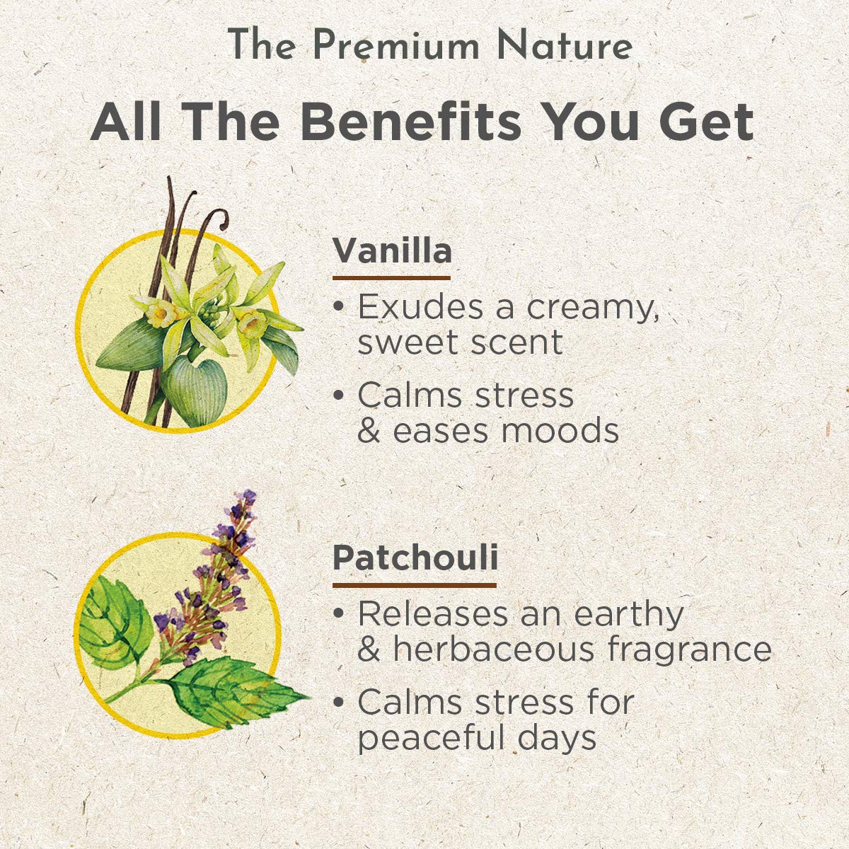 • NATURAL INGREDIENTS - Our vanilla oleoresin from Indonesia and patchouli essential oils are extracted to produce the purest form of vanilla essential oils and organic patchouli essential oil.