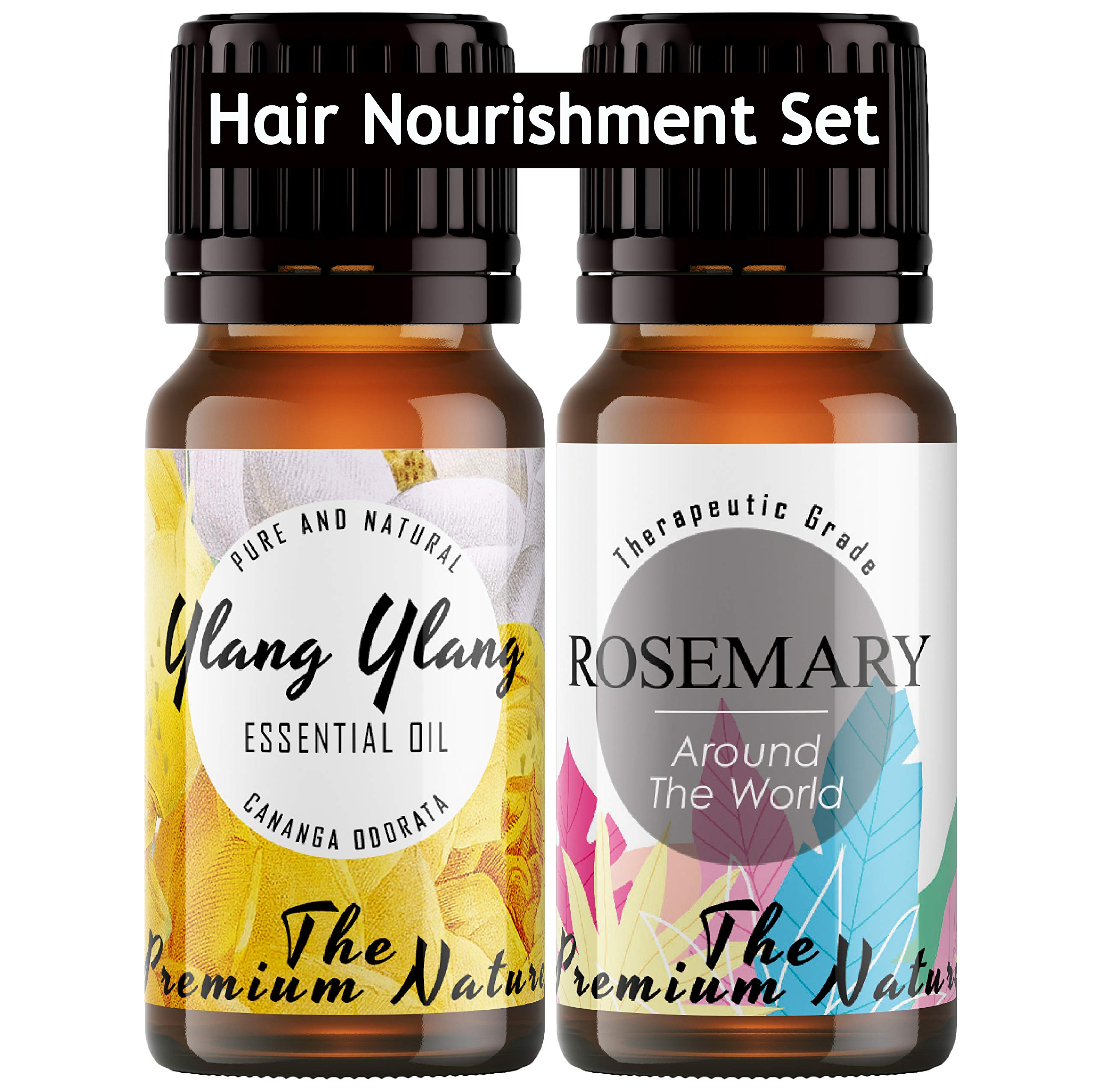 The Premium Nature Ylang Ylang Oil & Rosemary Essential Oil - Hair Nourishment Set for Hair Growth - 100% Pure Therapeutic Grade Essential Oils Set to Energize Scalp & Boost Volume - 2x10ml