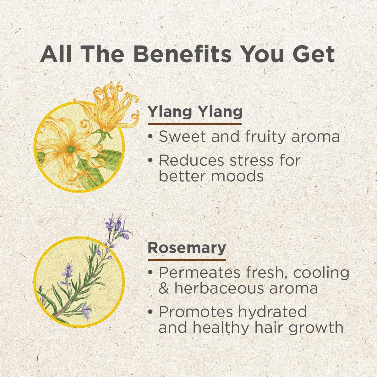 • NATURAL INGREDIENTS- Our ylang ylang from Madagascar and rosemary oil from Spain are produced by gentle steam-distillation to the purest form of ylang ylang and rosemary essential oil.