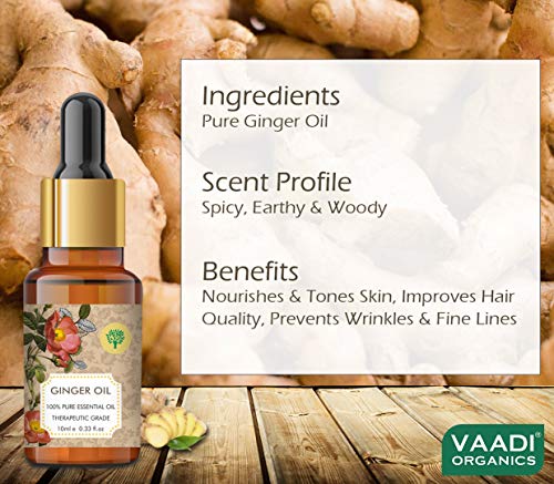 VAADI HERBALS has invested in research and innovations to produce a range of time-tested herb based essential oil range to enhance beauty and soothe & calm mind body and senses just the way nature intended us to be. Our commitment to quality extends throughout every phase of product development manufacturing and packaging. Herbs are checked for their essential qualities and tested at our laboratories where each ingredient is individually tested before it can be used to make a final product.About our essential oil range extracted through careful steam distillation and cold pressing only the purest essential oils are used in our range of oils.Ginger oil has warming and soothing properties that make it useful in everyday life. With a spicy fresh aroma It works well in a variety of diffuser blends and can enhance concentration and it can soothe and reduce feelings of stress anxiety and fatigue. The health benefits of ginger oil are the same as that of the herb from which it originates with the oil even being considered to be more beneficial due to its constituent that is mostly reputable for its antioxidant and anti-inflammatory properties.