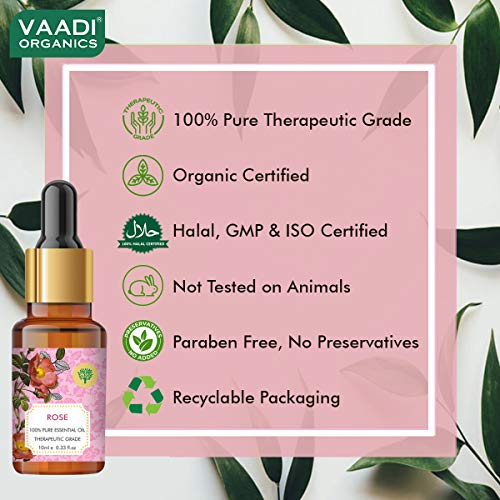 VAADI HERBALS has invested in research and innovations to produce a range of time-tested herb based essential oil range to enhance beauty and soothe & calm mind body and senses – just the way nature intended us to be. Our commitment to quality extends throughout every phase of product development manufacturing and packaging. Herbs are checked for their essential qualities and tested at our laboratories where each ingredient is individually tested before it can be used to make a final product.About our essential oil range extracted through careful steam distillation and cold pressing only the purest essential oils are used in our range of oils.Rose essential oil is the product of one of the most recognizable and culturally significant flowers in the world and has a rich intoxicating aroma. Rose oil is distilled to gently release the delicate flower's oil through steam. Its sweet rich aroma encourages feelings of positive self-reflection and can create an uplifted feeling when inhaled. Rose has also been used topically for thousands of years and today it can be found in many skin care products.
