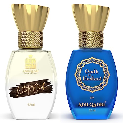 AdilQadri White Oudh & Oudh Al Hashmi Attar Combo | Strong Masculine & Sweet Arabic Scent | Long Lasting Alcohol-Free Roll-On Attar For Men & Women | Pack of 2-12ML Each