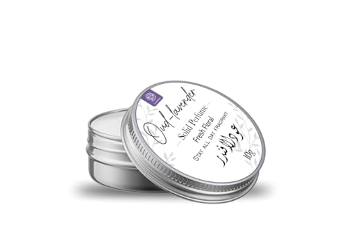 Al Masnoon Oud Lavender Solid Perfume is a luxurious long-lasting fragrance that combines the rich exotic scent of French Oud with the calming essence of lavender. This 10g solid perfume is crafted for those who appreciate the timeless allure of oud and the soothing qualities of lavender offering a unique all-day fragrance experience.