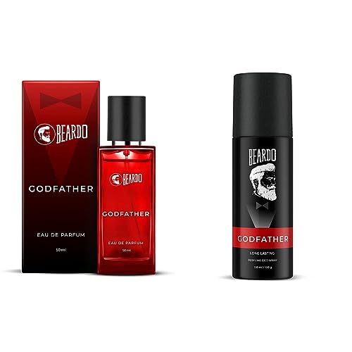 Beardo Godfather Perfume for Men | Aromatic Spicy Perfume for Men Long Lasting | Date night fragrance Body Spray for Men Ideal gift for men 50mlBEGIN YOUR RULE. Be prepared to captivate the senses of one and all with the powerful enigma of Beardo Godfather EDP. Beardo Godfather perfume has an alluring and authoritative appeal that instantly overshadows ordinary perfumes. Beardo Godfather is created to be versatile for all occasions yet it is sure to make you stand out. Its unique and powerful scent is fit to be used during day as well as night. It is a unique combination of citrus and spicy notes which make it fit for all seasons too.Beardo Godfather Perfume Deo Spray for Men 150ml | Citrus Aromatic Spicy | Body Spray Perfume For Men | Deo For Men | Long Lasting Perfume | Gift for MenLong Lasting Perfume