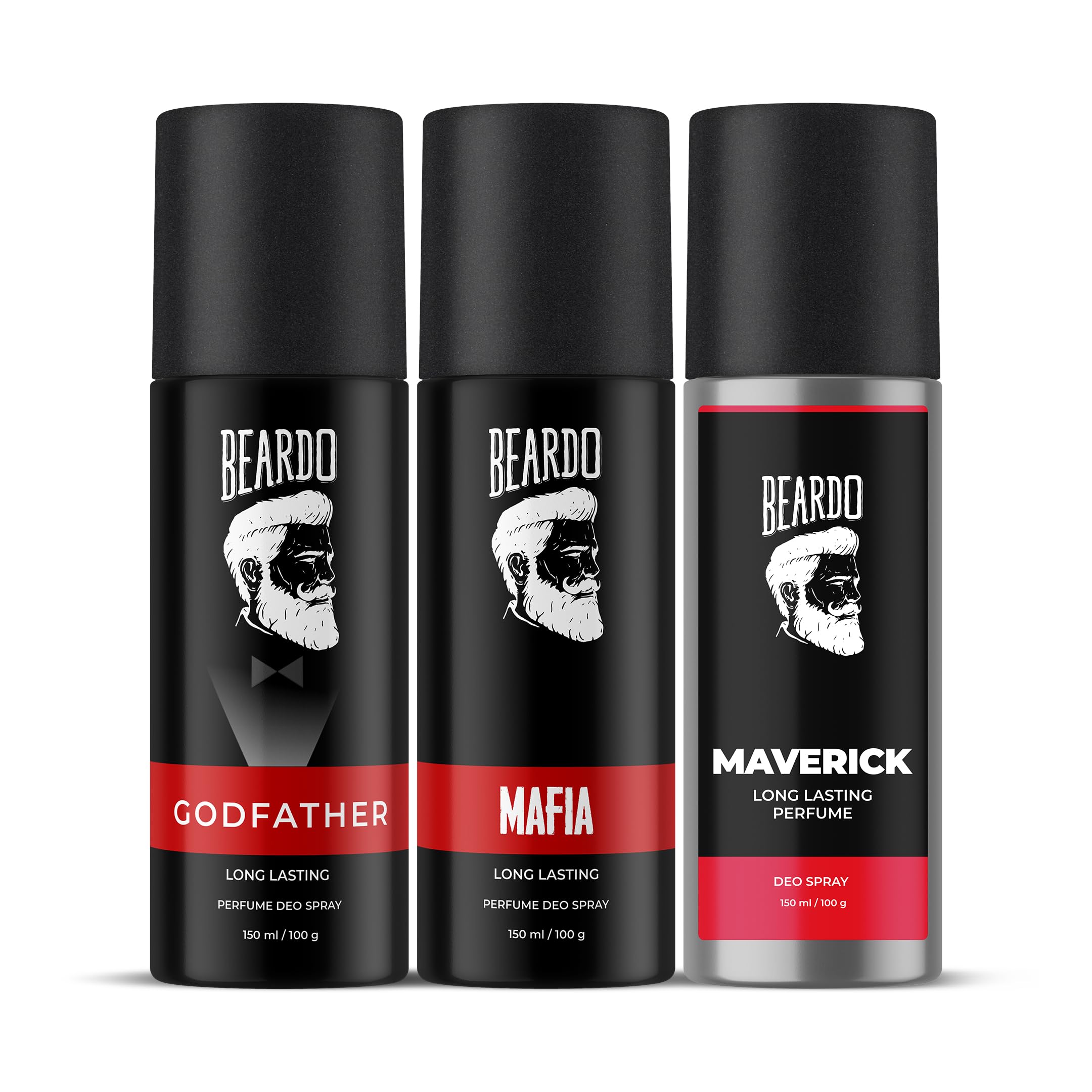 Beardo Godfather Mafia & Maverick Perfume Body Spray (Set of 3) Citrus Aromatic Spicy | Deodorant | Deo For Men | Long Lasting Perfume| Gift For Brother | Gift For Friends