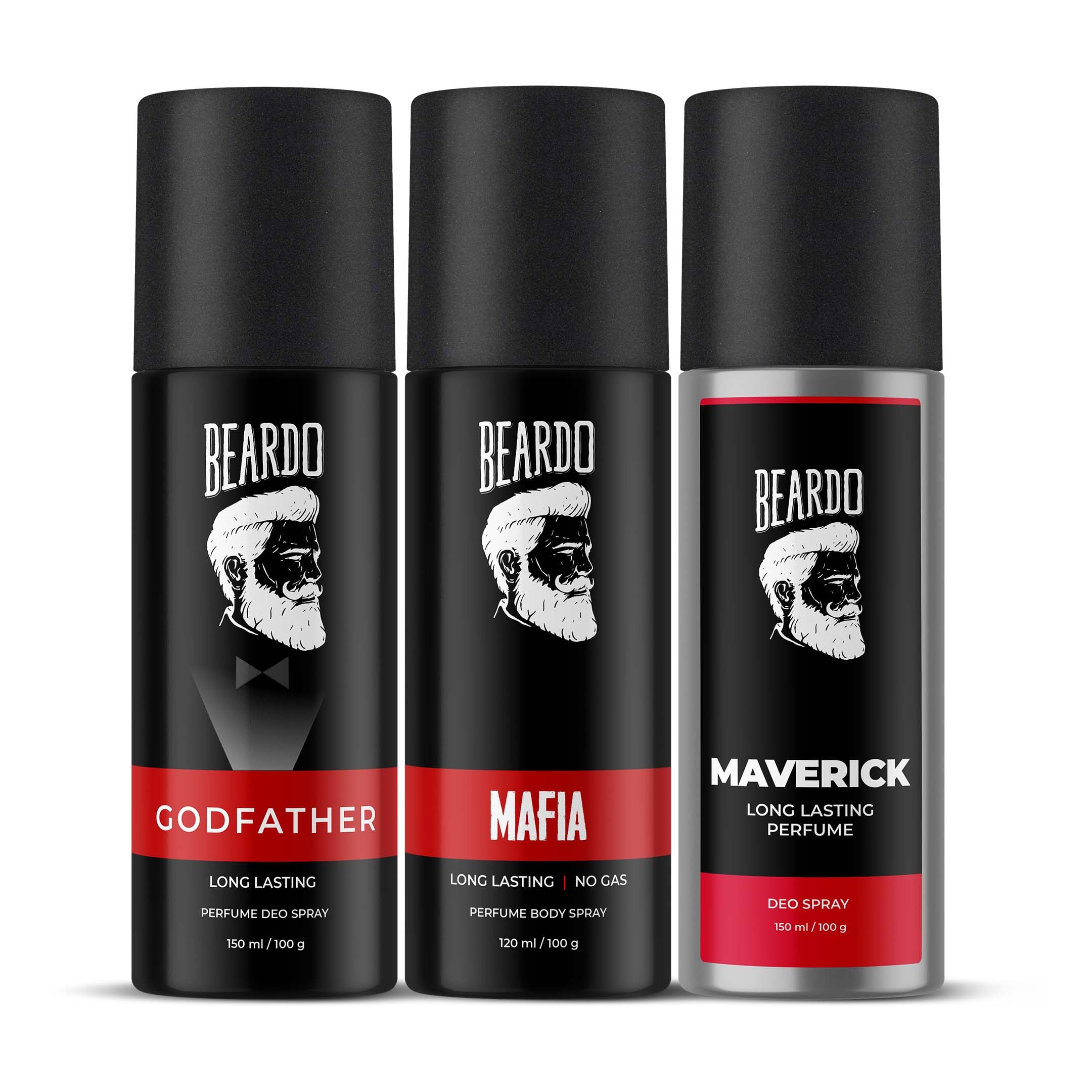 Beardo Godfather, Mafia & Maverick Perfume Body Spray (Set of 3) Citrus Aromatic Spicy | Deodorant | Deo For Men | Long Lasting Perfume| Christmas gift for men | Gift For Friends | Gift for Men