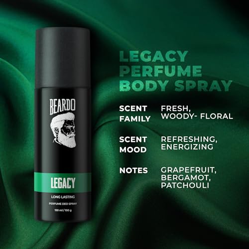 • Legacy Deo Spray : BUILD YOUR LEGACY with Beardo's legacy Deo spray - an unforgettable blend of spicy woody & fresh tones to keep you irresistable all day long!