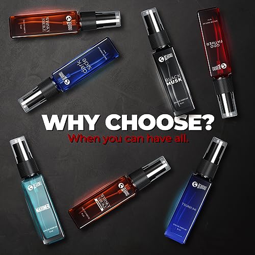 Beardo Legendary 7 Assorted Perfume Gift Set for Men 7X8ml with Long Lasting Fragrances | Travel Pack with Mariner Whisky Smoke Dark Side God Father Tsunami & Black Musk | Valentines day gift for husband | Gift for boyfriend | Gift for Men