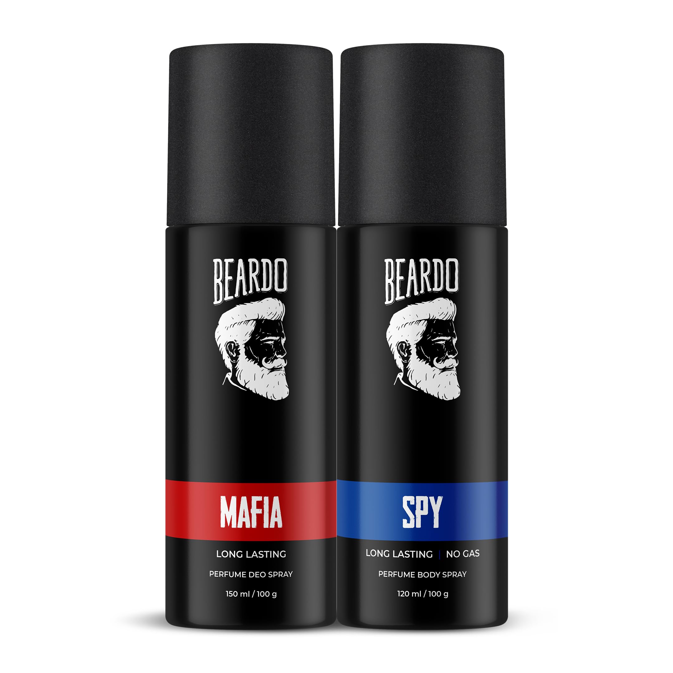 Beardo Mafia & Spy Deodorant Perfume Body Spray (120ml x 2) | Long Lasting No Gas Deo For Men | Oriental Woody Notes - Mafia Deo | Aromatic Fresh - Spy | Gift For Brother | Gift For Friends