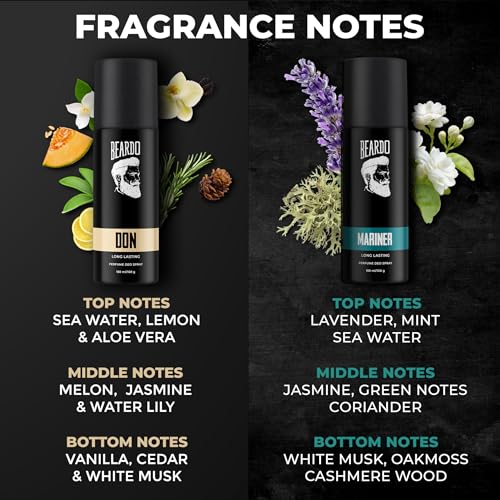 Beardo Mariner & Don Perfume Body Spray 150ml Each Combo | Long Lasting | Deo For Men | Deodorant for Men | Fresh, Aqua Notes | Christmas gift for men | Gift For Friends | Gift for Men