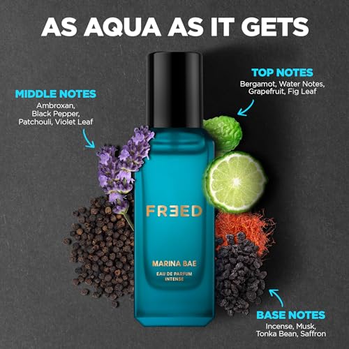 • FRESH AQUA: Take a dive in the ocean with Freed’s Marina Bae a fresh aqua saffron & mint with addictive notes of fig leaf & grapefruit accents. It's an explosive sensual smell.