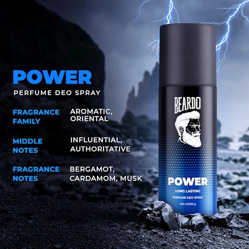 BEARDO PERFUME DEO SPRAY - Power, 150ml | Get compliments with Long lasting Woody, Aromatic Deodorant Brand | Ideal gift for Men | Christmas gift for men | Gift For Friends | Gift for men