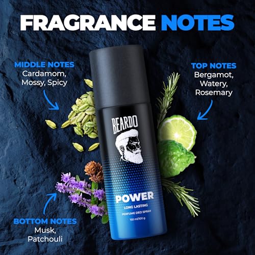 • Beardo POWER Deo Spray is crafted for the Truly Powerful men! This commanding fragrance ensures you exude an aura of undeniable power and leave a lasting impression wherever you go.