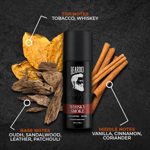• Pour yourself a brilliantly boozy concoction in the form of Beardo Whiskey Smoke Body Spray. Its unique and intense aroma is sure to raise your bar (pun intended!) This utterly masculine fragrance is strong & long-lasting. Be a new kind of outlandish with