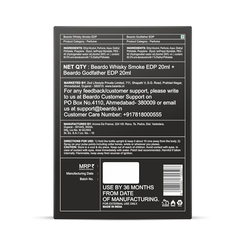 • LONG LASTING EDP (EAU DE PARFUM): Beardo Perfumes are highly concentrated perfume which lasts longer than an EDT (lower concentration).
