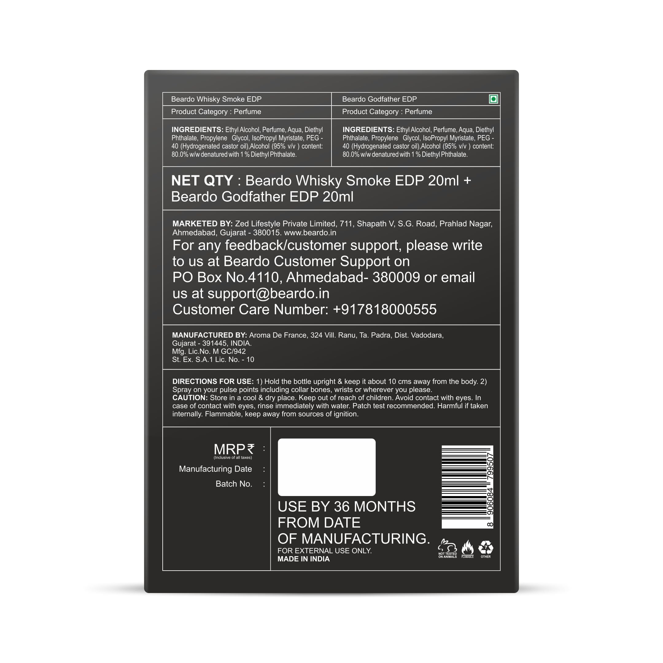 Beardo Whisky Smoke & Godfather Perfume Combo (20 ml x 2) | Spicy, Woody - Oudh Notes of Whisky Smoke & Aromatic, Spicy Notes of Godfather | Lasting Mens Perfume | Ideal gift for men | Valentines day gift for husband | Gift for boyfriend | Gift for Men