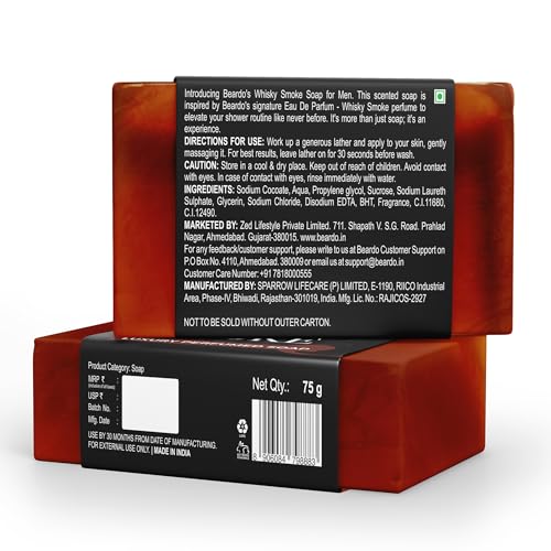 Beardo Whisky Smoke Perfumed Luxury Soap for Men, 75g x 3 | Deep cleanses skin pores | Repairs broken skin and Reduce Hyperpigmentation | Refreshing Fragrance all day long