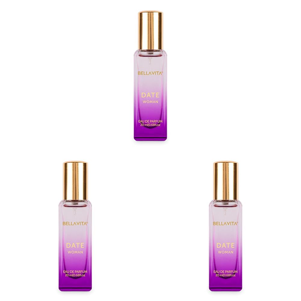 Bella Vita Luxury Date Woman Eau De Parfum Liquid Perfume With Pink Pepper Jasmine & Vanilla|Premium Long Lasting Floral & Fruity Fragrance For Women 20Ml (Pack Of 3)