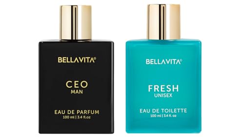 Bella Vita Luxury CEO MAN Eau De Parfum Perfume for Men with Lemon Lavender Tonka & Agarwood|Woody & Spicy Long Lasting EDP Fragrance Scent 100 MlLife in the Fast Lane! Perfect for everyday wear CEO MAN Eau De Parfum elevates the 'CEO' in you. Refreshingly daring yet long-lasting with top hints of lemon and sugar delicately energising with Lavendar at its heart and finally arise the vetiver moss and tonka's sharply-dressed base. This perfume honours your debonair and charismatic personality allowing you to be true to yourself just with the 'CEO' touch added to it!Bella Vita Luxury FRESH Eau De Toilette Unisex Perfume for Men & Women with Bergamot Ylang Ylang |Refreshing EDT Long Lasting Fragrance Scent 100 MlTangy spicy woodsy and more- Bella Vita Organicâ Always Fresh Unisex Perfume certainly lives up to its name A perfect concoction to uplift sultry moods this fresh smelling perfume with its lasting fragrance is all you need to beat the summer blues. This summer make it your signature scent and get heads turning wherever you go A clean fresh-smelling perfume is definitely the """"little black dress"""" of the perfume world especially in hot and sweaty tropical summers. Bella Vita Organic is ready to scintillate your senses with its Always Fresh Perfume perfectly suited for both men and women. This delicate woody aquatic perfume is crafted by our fragrance artisans to create a captivating and long-lasting scent. Its top notes open with stimulating sea notes matched with grapefruit and mandarin orange. The heart notes resonate the spicy floral accord of jasmine and bay leaf while the bold base notes are composed of guaiac wood oakmoss and patchouli. This beautiful amalgamation of masculine and feminine notes blending the yin-yang creates an extraordinarily fresh perfume. Its citrusy freshness matched with warm spices and the woody base is like a cool irresistible cocktail drink on a hot beach. And don't we all love a refreshing cocktail on a beach? So get summer ready and smell always fresh with the choicest fresh perfume to beat the summer heat.