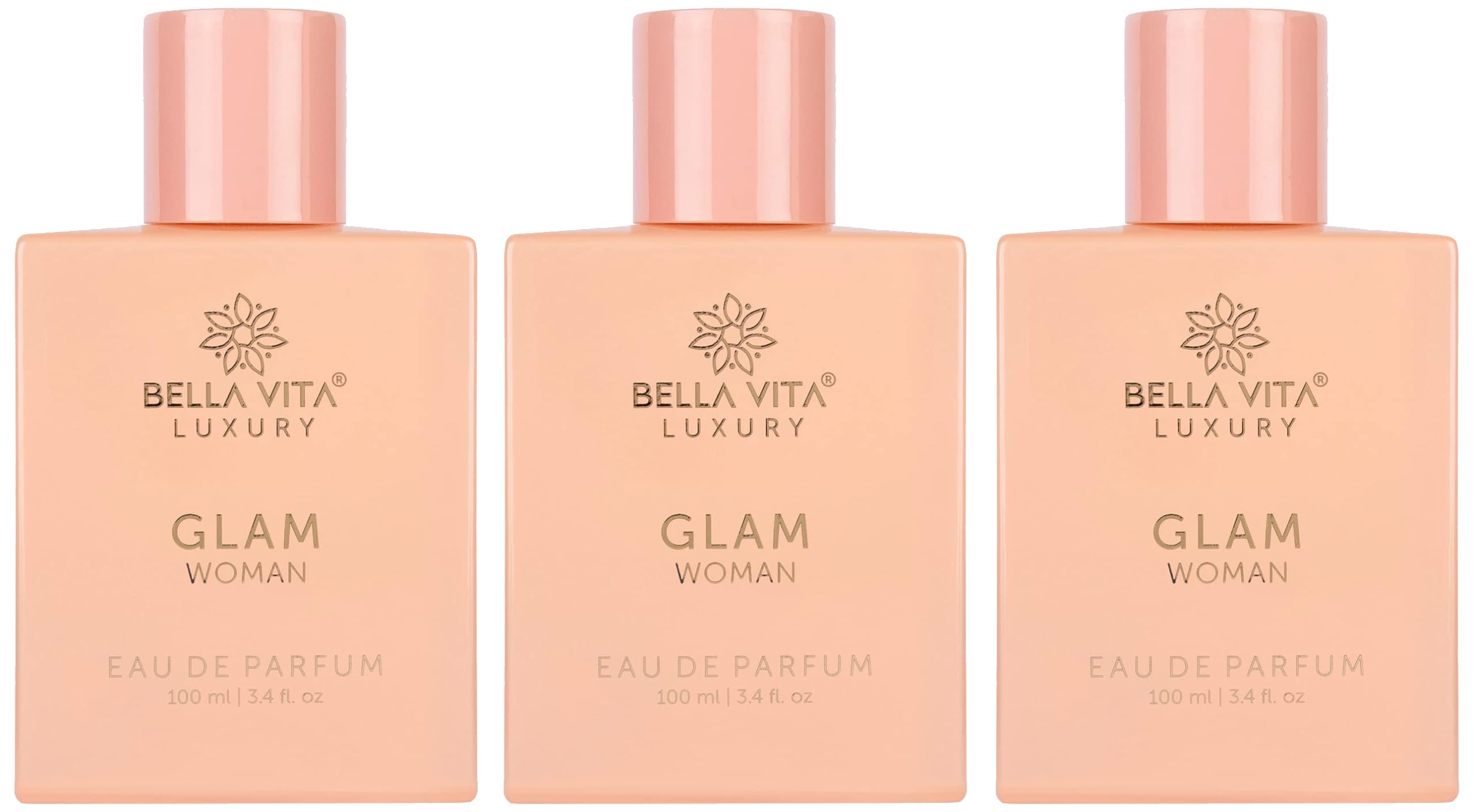 Bella Vita Luxury Glam Women Eau De Parfum Liquid Perfume For Her With White Honey & Virginia Cedar|Floral Long Lasting Edp Floral Fragrance Scent 100 Ml (Pack Of 3)