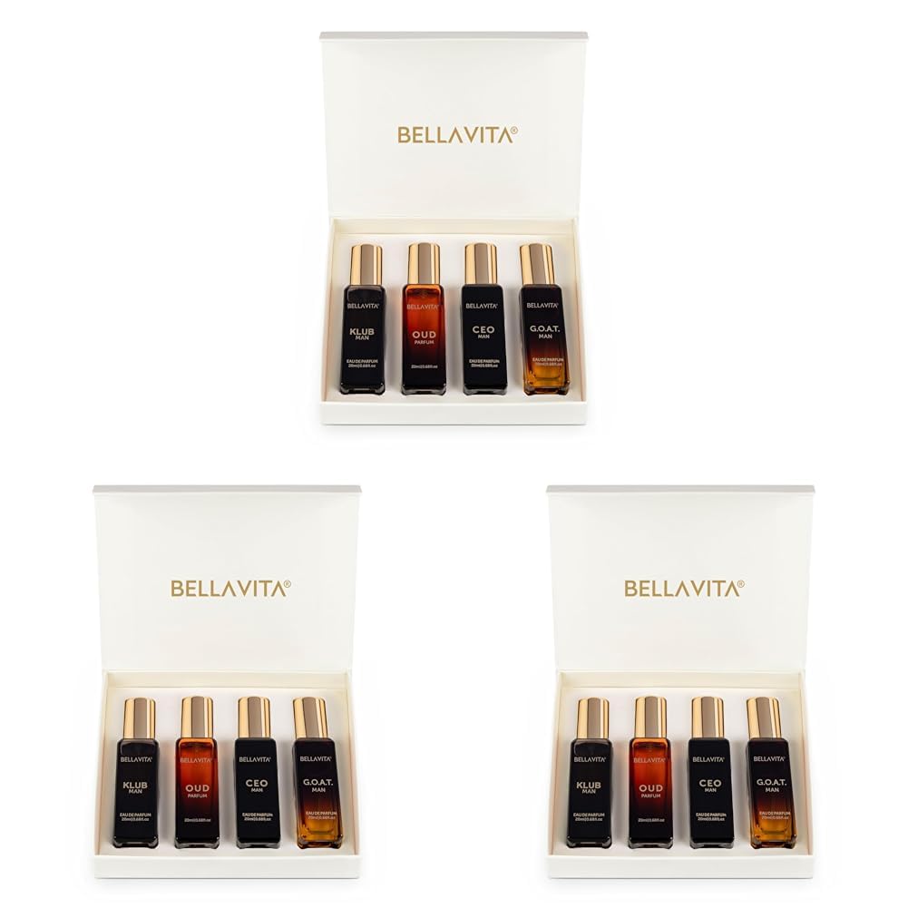 Bella Vita Luxury Man Liquid Perfume Gift Set 4 X 20 Ml For Men With Klub Oud Ceo G.O.A.T Perfume | Woody Citrusy Long Lasting Edp Fragrance Scent (Pack Of 3)