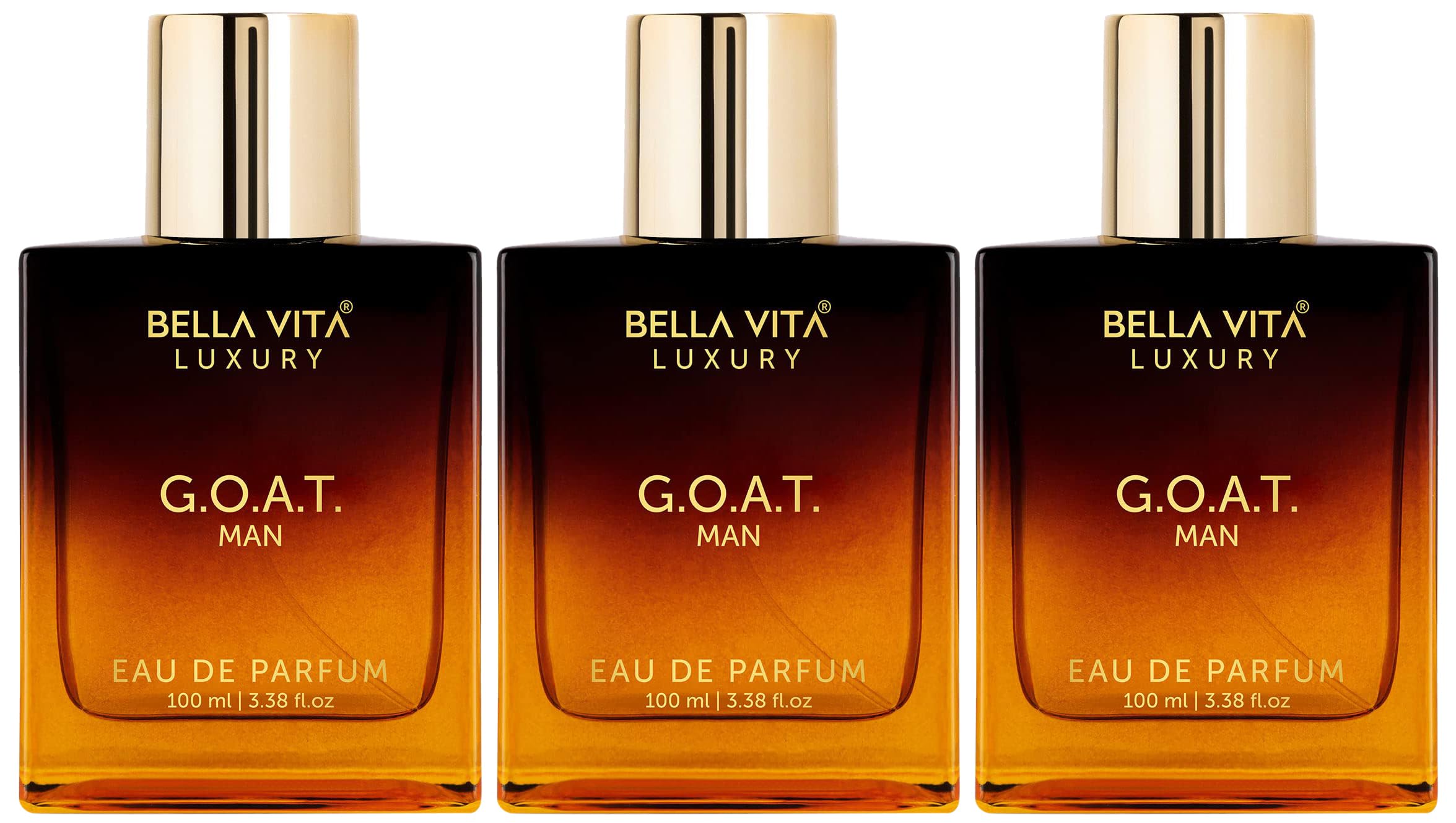 Bella Vita Luxury Men G.O.A.T Eau De Parfum Liquid Perfume With Bergamot, Lavender & Patchouli|Woody & Oriental Long Lasting Edp Fragrance Musk Scent, 100 Ml (Pack Of 3), 300 Millilitres