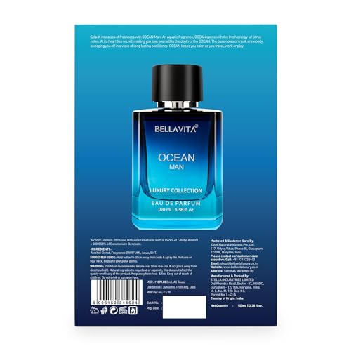 • Ocean Man by Bella Vita is an Eau De Parfum a rich fragrance that gives you an instant burst of energy while keeping you cool calm and collected adding a woody confidence to your demeanour.