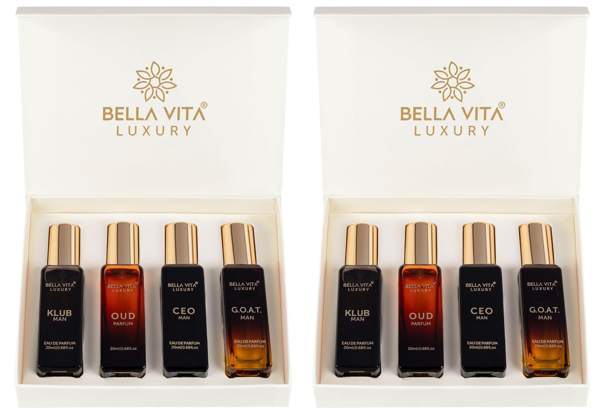 Bella Vita Luxury Men Vanilla Liquid Perfume Gift Set 4 X 20 Ml With Klub Oud Ceo G.O.A.T Liquid Perfume | Woody Citrusy Long Lasting Edp Fragrance Scent (Pack Of 2) 160 Millilitres