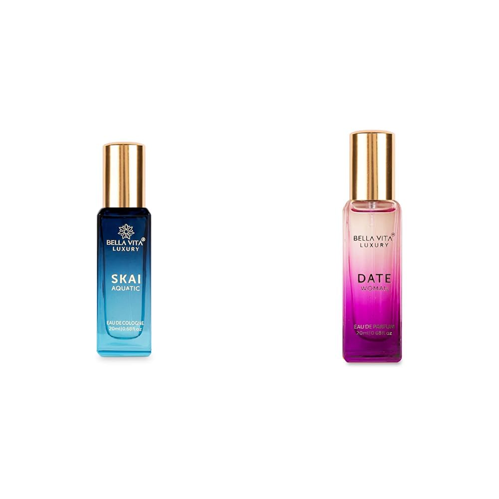 Bella Vita Luxury Skai Aquatic & Date Women Perfume Spray Combo With Bergamot, Pink Pepper, Fruity Long Lasting EDC, EDP Fragrance Scent Pack Of 2, 20ml Each