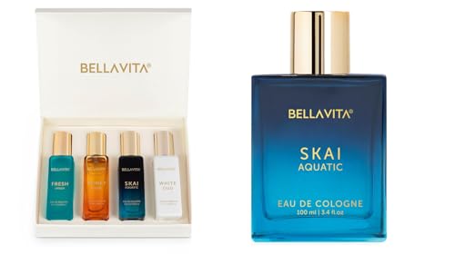 Bella Vita Luxury Unisex Eau De Parfum Gift Set 4 x 20ml for Men & Women with SKAI FRESH WHITEOUD PATCHOULI Perfume|Long Lasting EDP Fragrance Scent"Unbox a treasure of little luxuries with our Unisex Luxury Perfume Set that makes for the perfect gift for everyone. An arsenal of indulgence this box set carries some of Bella Vita Organic's most iconic fragrances. A little bit about the fragrances in the Bella Vita Organic Unisex Luxury Perfume Set: White Oud: The Spice Odyssey. Charmed by the tangy Artemisian Lemon at the top freesias at its heart and amber at its base The White Oud is a revelation of all things 'sweet' and 'spice'! Skai: Exudes Freshness and Sophistication. Top note of bergamot fuses perfectly with Ambergis at its base and pink pepper at its heart. The Skai Aquatic Eau De Cologne has a fresh appeal for the effortlessly sophisticated yet understatedly charming! Fresh: A mythical fragrance rephrasing ancient elegance. Top Bergamot note is accentuated by lavender at its heart and Ylang-Ylang at its base manifesting an irresistibly iconic appeal. A breath of Fresh air the Fresh Eau De Toilette is full of purity and versatility! Patchouli: An exhilarating blend that transpires us into the Imperial apothecary. Considered a powerful plant essence Patchouli orchestrates sweet spicy smokey and cedar(y) notes.Bella Vita Luxury Skai Aquatic Eau De Cologne Unisex Perfume for Men & Women with Bergamot Pink Pepper |Long Lasting Aqua EDC Fragrance Scent 100 MlExudes Freshness and Sophistication. An iconic blend of bergamot and coriander at the top fuses perfectly with the invaluable at its base and pink pepper at its heart. The Skai Aquatic Eau De Cologne has a fresh appeal for those who are effortlessly sophisticated yet understatedly charming