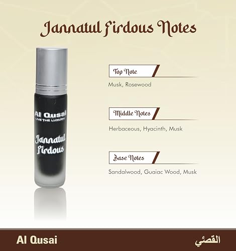 Jannatful Firdous Attar Unisex 8ML Roll-On Perfume Alcohol-Free Long-Lasting Fragrance with Musk Rosewood Hyacinth & Sandalwood Natural Perfume Oil for Men & Women