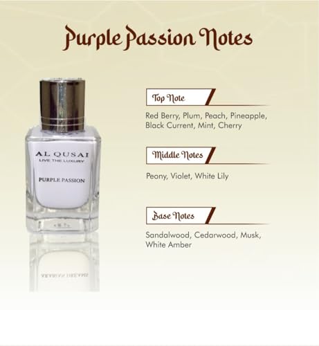 Al Qusai Purple Passion A purple concoction with fruity aromas create an enticingly sensual scent with a lingering sweetness. The top notes of berries and blossoming cherries entice you and the lily's centre notes give off a fresh floral aura. LIVE THE LUXURY with Al Qusai -Purple Passion a tantalizing scent which will craft a sophisticated aura around you and bring out your Passionate side. Al Qusai - Zafran Zafran is a divine unisex scent with saffron as top notes undertones and earthy tones of amberwood base notes include fir resin and cedar. Zafran which has a rejuvenating effect on the mind and body will create an aromatic atmosphere around you. making you stand out.LIVE THE LUXURY of Al Qusai's Zafran long-lasting_refreshing essence; you simply can't stay out of it!