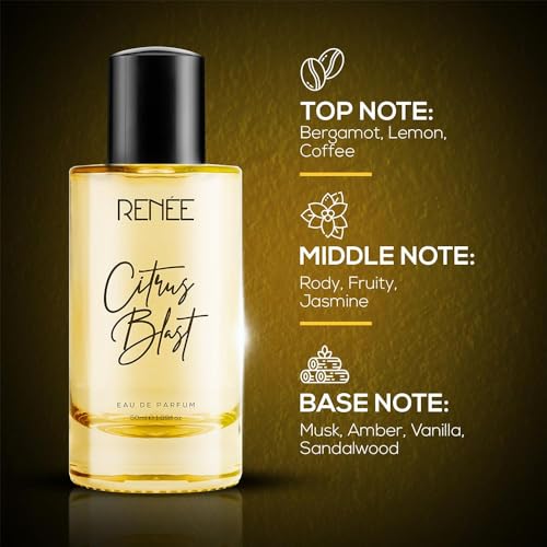 RENEE Citrus Blast Eau De Parfum, Premium Long-Lasting Fragrance with Notes of Bergamot, Lemon, Rose, Jasmine & Musk, Scent EDP for Every Occasion, Gifting, Ideal Luxury Perfume for Women, 50 Ml