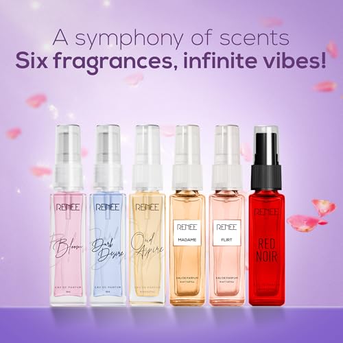 Experience the RENEE Scentsational Perfume Combo â six iconic fragrances in one captivating collection. From the floral elegance of Bloom to the sultry allure of Dark Desire and the mysterious charm of Red Noir sophistication of Madame and playfulness of Flirt- each scent tells a unique story. Wear these versatile fragrances to stand out and leave a lasting impression wherever you go.