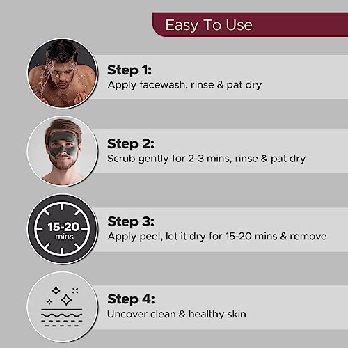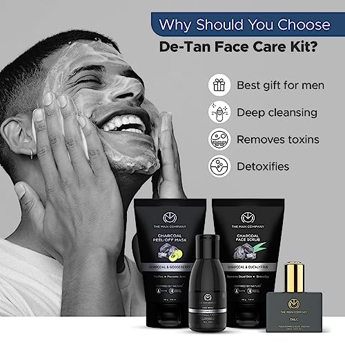 The Man Company De Tan Face Care Kit For Men With Activated Charcoal Peel Off Mask, Scrub, Face Wash & Talc Perfume | Anti Pollution, Acne Oil Control | Deep Cleansing | Blackheads Remover - Pack Of 4