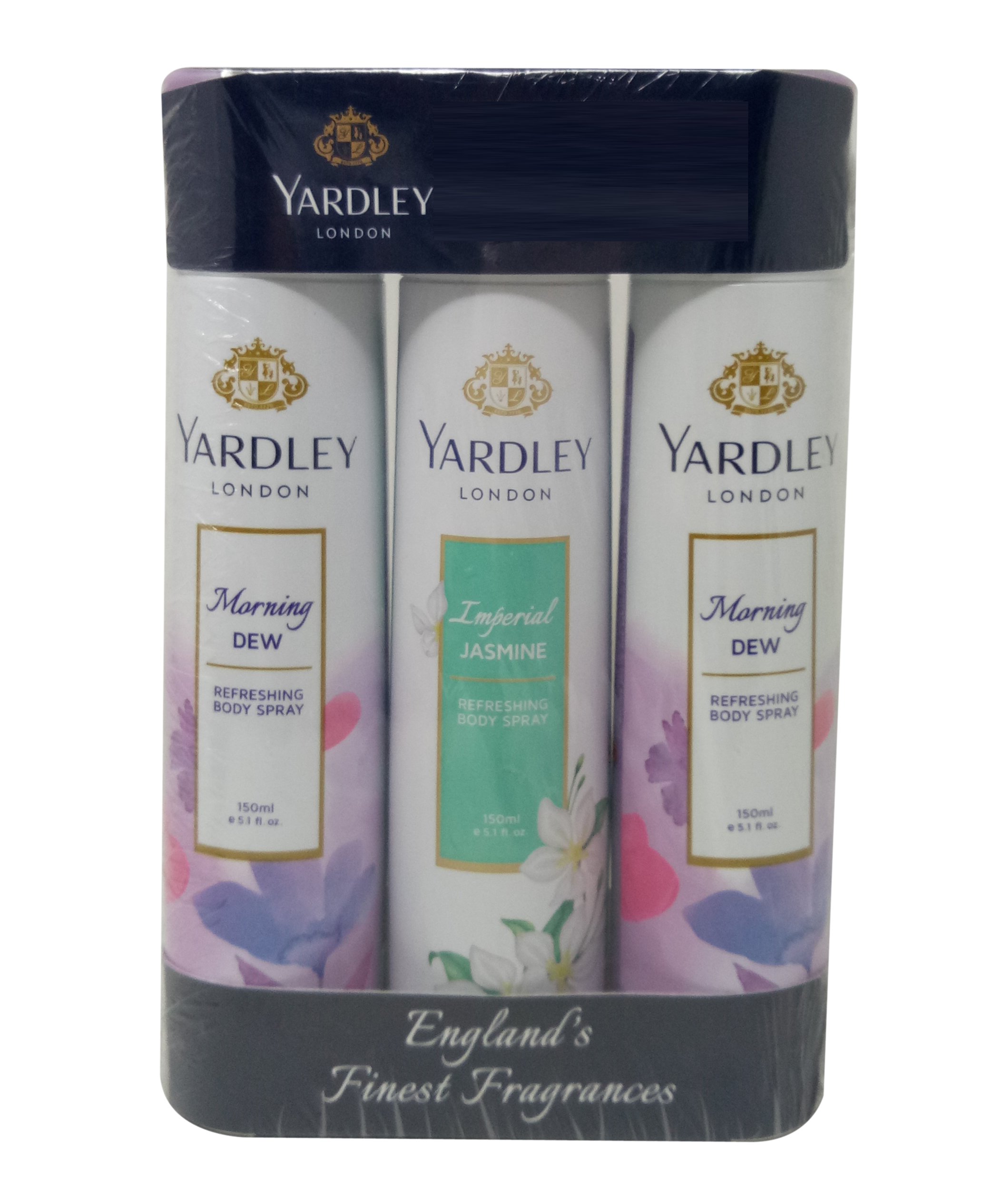 Yardley Body Spray - Morning Dew and Imperial Jasmine for Women (2+1) x150ml Combo Pack