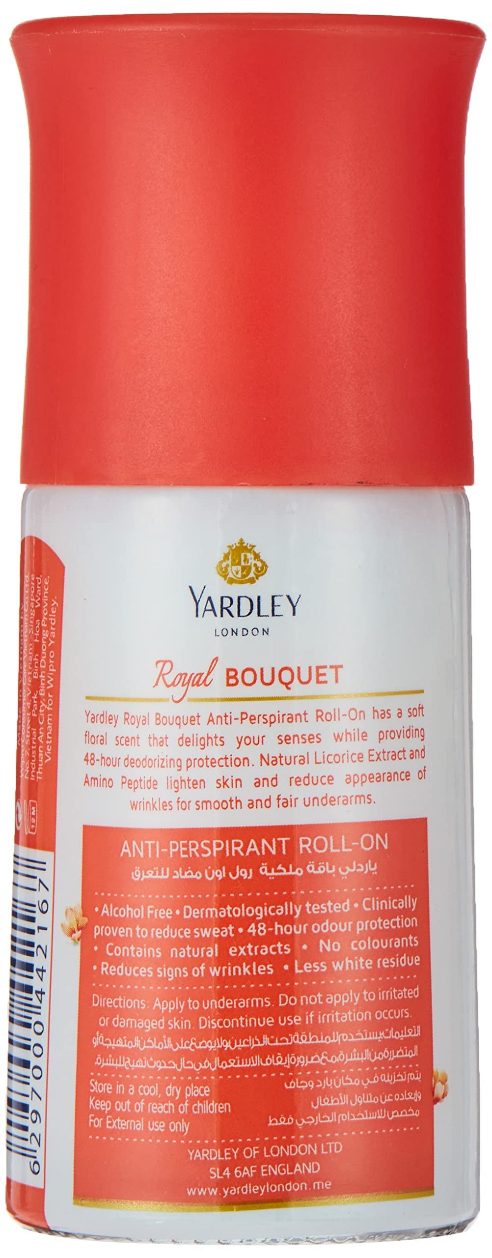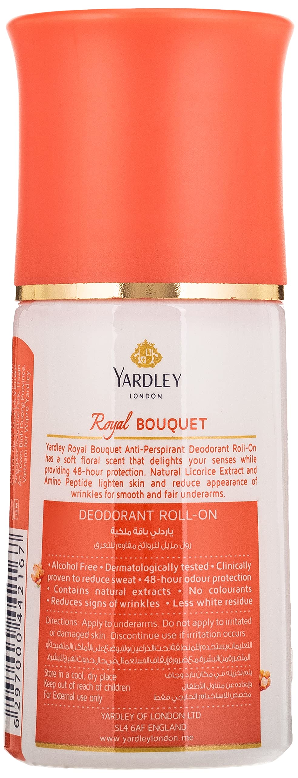 Infused with a soft delicate floral fragrance the Yardley Royal Bouquet roll-on will elevate your senses with delight.