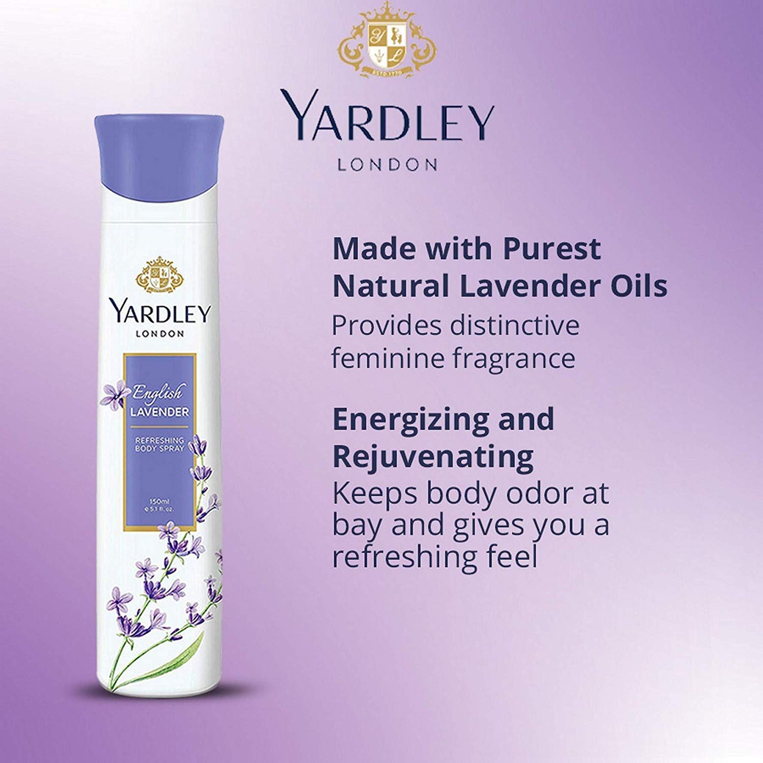 Yardley English Lavender Body Spray. Provides Long Lasting Fragrance and keeps your fresh.