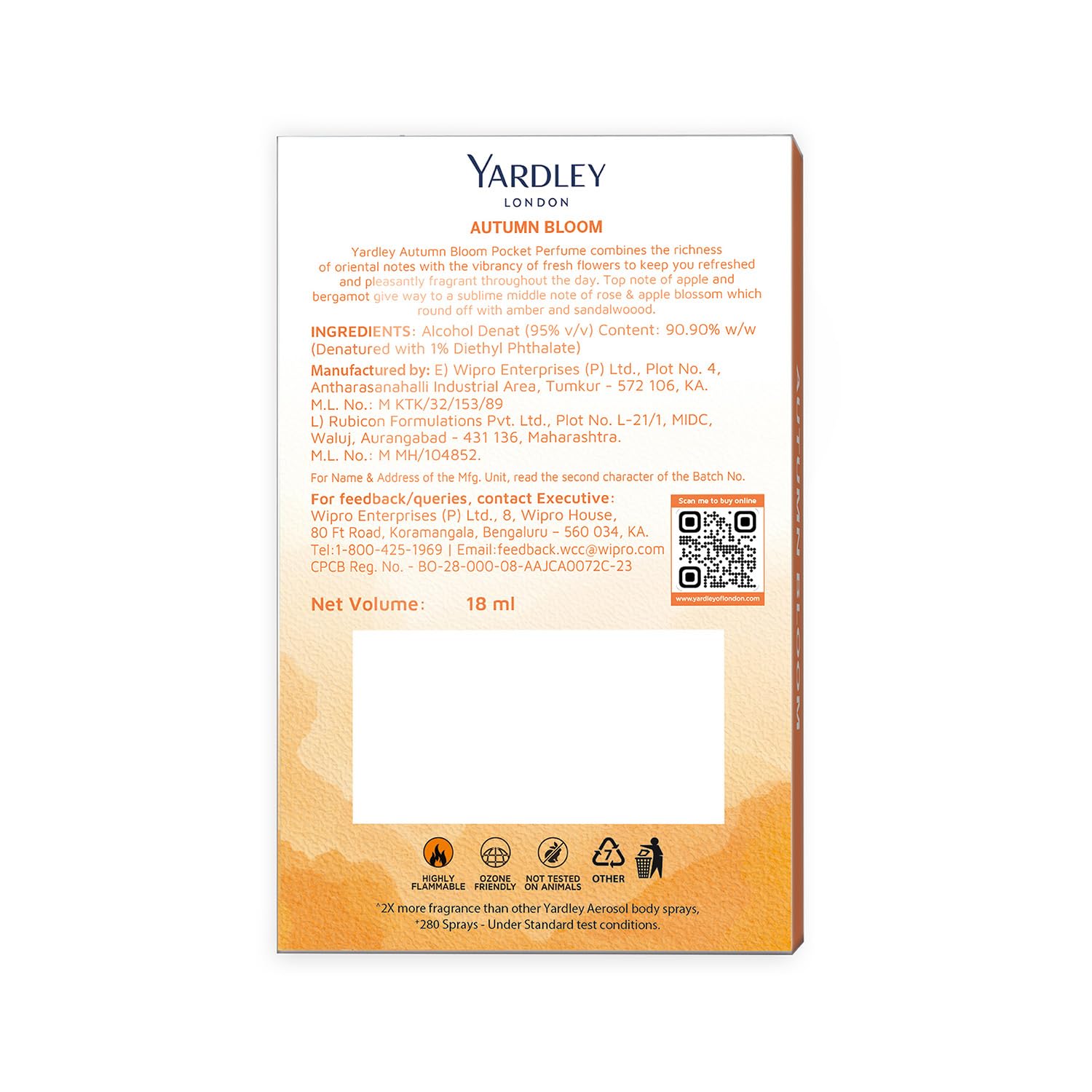 Embrace the essence of autumn with Yardley London's Autumn Bloom Compact Perfume for Women. This fragrance is a sweet sensual ode to the vibrant beauty of British autumn capturing the rich scents that define the season.Autumn Bloom is a harmonious blend of oriental richness and the vivacity of fresh flowers. As you apply it you're greeted with a delightful zest of Apple and Bergamot awakening your senses to the beauty of autumn. At its heart lies a captivating symphony of Rose and Apple Blossom a floral melody that lingers beautifully. Now you can carry the enchanting essence of Autumn Bloom with you wherever you go thanks to this compact on-the-go format from The House of Yardley. It's an invitation to embrace the warmth and sensuality of autumn no matter the season.Yardley London with over 250 years of legacy is a brand that embodies Englishness luxury quality and the magic of natural fragrances. Trust in a brand that's celebrated for offering authentic premium-quality floral fragrances and personal care products. Experience Autumn Bloom and let its sensual oriental fragrance become a part of your daily ritual. It's more than just a perfume; it's an expression of your vibrant confident self capturing the very essence of autumn's beauty.