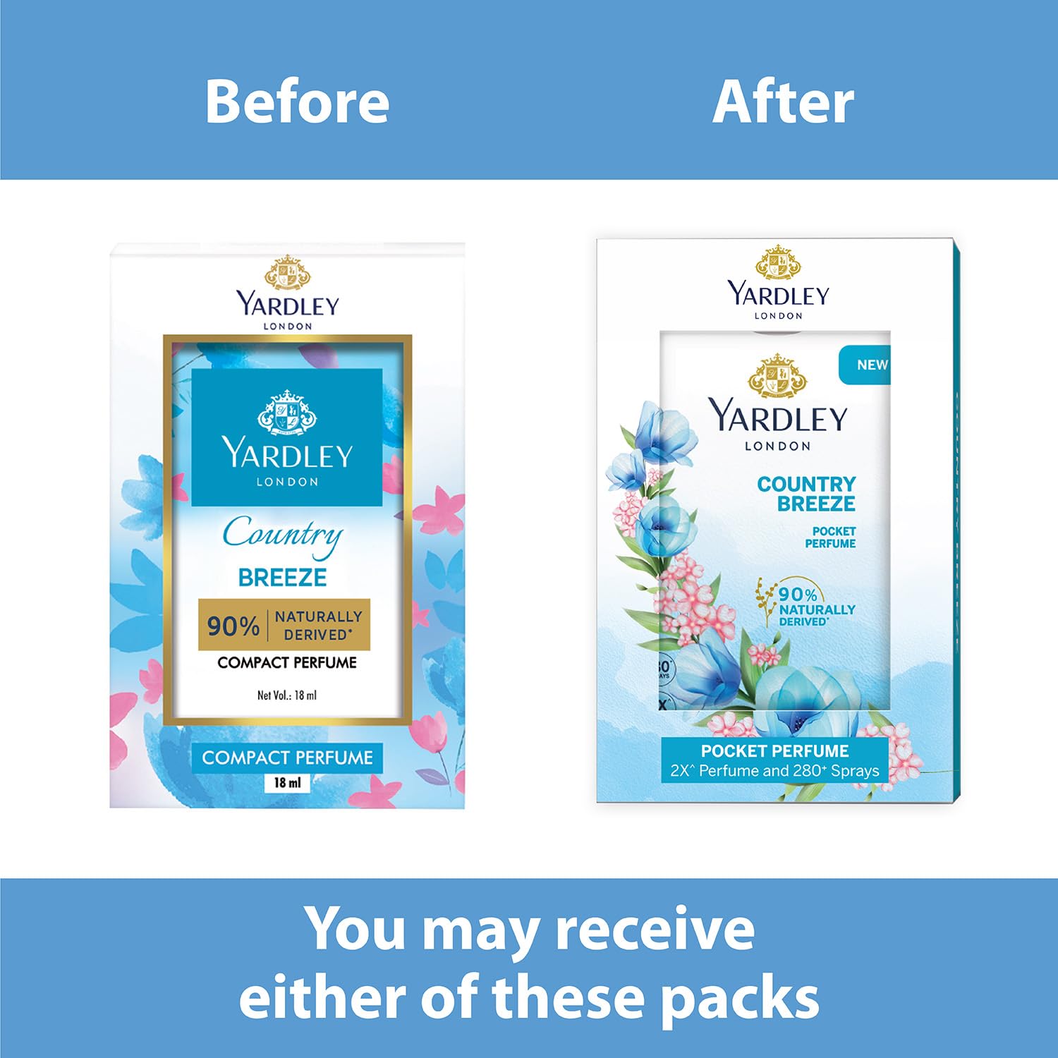 Evoke the enchanting scents of the English countryside with Yardley London's Country Breeze Compact Perfume for Women. This charming fragrance encapsulates the essence of lush untouched meadows where the gentle breeze carries the fragrance of wildflowers.Country Breeze is a sparkling perfume that opens with a lively burst of Mandarin and Bergamot instantly awakening your senses and inviting you to embark on a sensory journey. At its heart lies the refined elegance of Jasmine and Freesia creating a harmonious floral symphony that's both captivating and alluring. Now you can carry the spirit of the countryside with you wherever you go thanks to this convenient on-the-go format from The House of Yardley. It's a delightful invitation to embrace the beauty and tranquillity of the English countryside no matter where you are.With a legacy spanning over 250 years Yardley London is a brand synonymous with Englishness luxury quality and the allure of natural fragrances. Trust in a brand that's celebrated for delivering authentic premium-quality floral fragrances and personal care products. Country Breeze Compact Perfume is more than just a scent; it's an expression of your love for the English countryside capturing the essence of wildflower-filled meadows and the tranquillity of a countryside breeze. Elevate your daily ritual with this exquisite fragrance and feel the enchantment of the countryside envelop you.