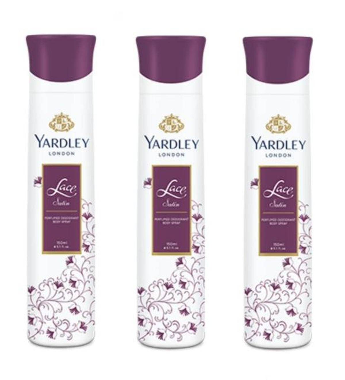 Yardley London Lace Satin Deodorant Spray For Women 150-ML (Pack of 3)