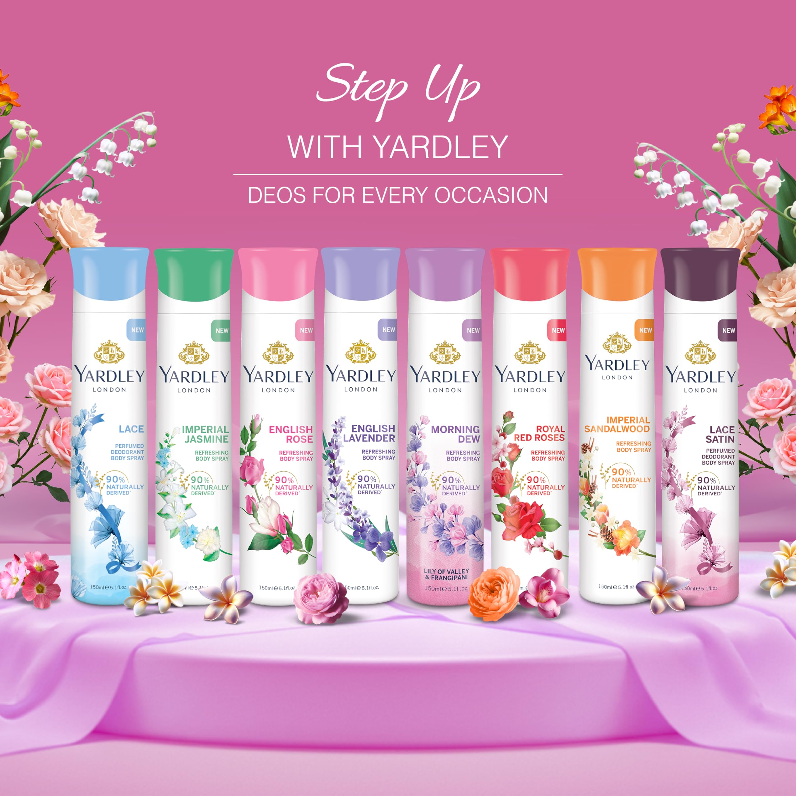 Discover the captivating world of Yardley London's Lace Satin Perfumed Deodorant Body Spray for Women. Envelop yourself in an exquisite fragrance of this body deodorant designed to enhance your natural allure. Lace Satin Perfumed Deo is more than just a scent; it's a touch of elegance and femininity that effortlessly accompanies you throughout your day. As you spritz Lace Satin its delicate notes caress your skin wrapping you in an irresistible charm that leaves a lasting impression. This fragrance is the embodiment of femininity designed to accentuate your innate sensuality and make you feel confident and alluring. Whether heading to a special occasion or simply embracing the beauty of everyday life Lace Satin Perfumed Deo is the perfect companion.Lace Satin Perfumed Deo is a part of Yardley's Fusion Fragrances a contemporary range crafted from a bouquet of fresh flowers in the English countryside. Each spray carries the essence of blooming florals giving you a sense of nature's beauty with every application. This fusion of scents adds a unique and modern twist to the classic floral fragrances Yardley is renowned for.The House of Yardley has a legacy that spans over 250 years specialising in classic and premium floral fragrances that exude English luxury. Indulge in the freshness of Yardley London's floral fragrances which transport you straight from the fields of the English countryside. With a commitment to quality authenticity and natural fragrances Yardley London stands as the quintessential English fragrance offering you the finest in premium perfumes and ancillary body products.