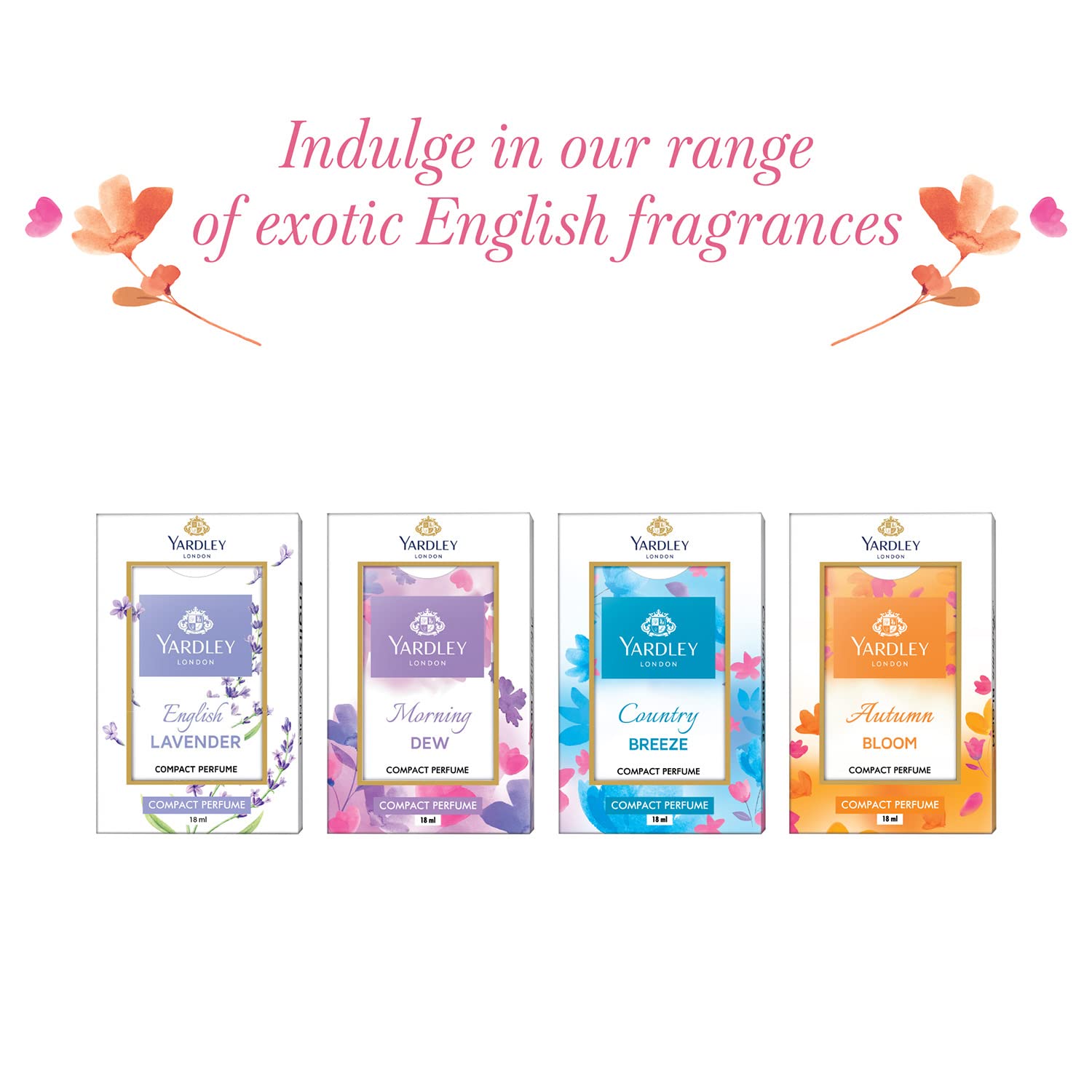 Experience the essence of Yardley London's Compact Perfume Assorted Pack a curated collection that brings together the invigorating Morning Dew the sweet Autumn Bloom and the enchanting Country Breeze. In the Morning Dew variant Freesia and Rose blend with Mandarin's uplifting touch creating a subtle trail of Musk for all-day freshness. Autumn Bloom harmoniously blends Apple Bergamot Rose and Apple Blossom encapsulating the warmth and sensuality of autumn. Country Breeze captures the English countryside with Mandarin Bergamot Jasmine and Freesia offering a delightful journey in each spritz. Conveniently sized for on-the-go luxury this assorted pack is a 250-year legacy of Englishness quality and the magic of natural fragrances from The House of Yardley. Elevate your daily ritual with this collection expressing your vibrant confident self and capturing the essence of diverse and enchanting scents.